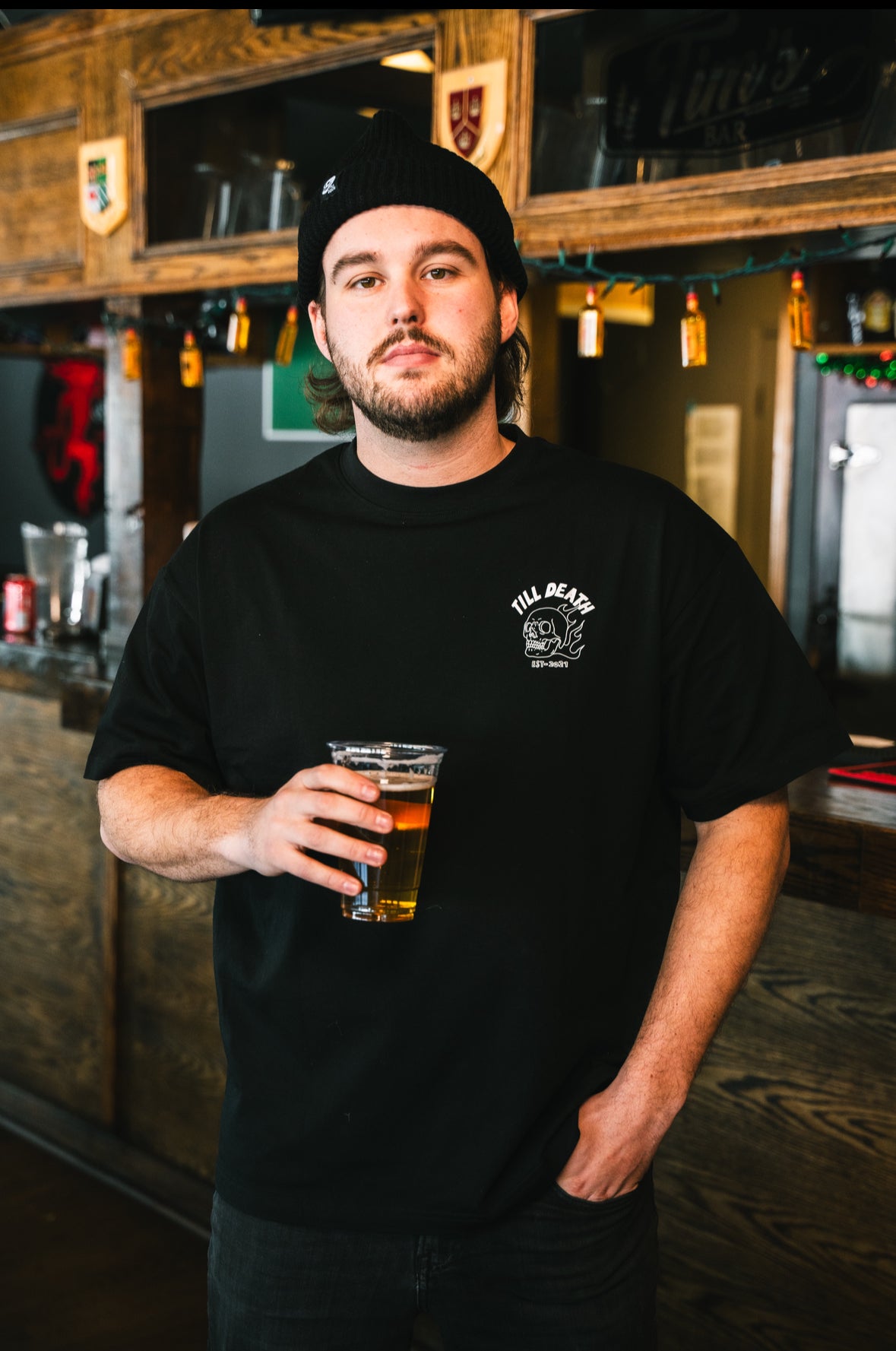 Bold, clean, and unapologetic — the Till Death Classic Skull Tee embodies the spirit of living life to the fullest. Featuring a striking back print of our signature skull and rose design with TILL DEATH lettering, and a smaller flaming skull logo on the chest, this piece blends streetwear attitude with timeless monochrome style.